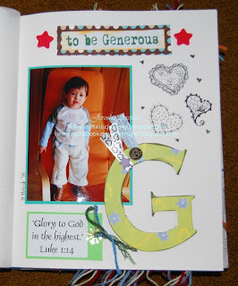 Inside the album (inside front cover), I have a letter for him dated April 2008 coz that was the day I finished making this book and I know he will be able to read it with full understanding years from now. I also added ABC's of Bible verses that touches me as a person.